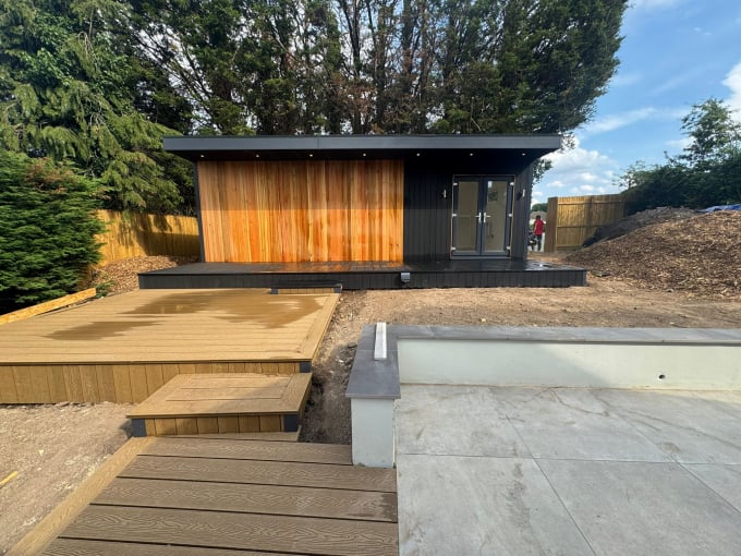 Composite decking is engineered from a blend of recycled wood fibres and polymers, creating a material that combines the natural look of wood with the durability of synthetic materials. Unlike timber, which requires regular staining, treating, and sealing, composite decking is designed for long-term performance with minimal upkeep. It’s slip-resistant, weatherproof, fade-resistant, and comes in a variety of colours and textures. As outdoor living spaces become more sophisticated, composite decking offers the kind of clean lines and contemporary finish that perfectly complement modern garden room architecture.