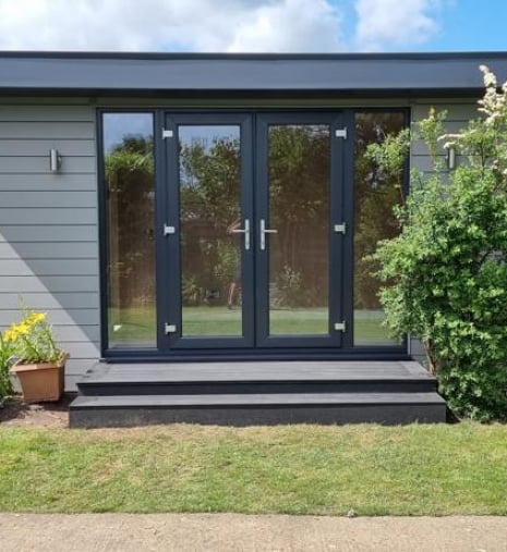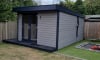 Our rendered garden lodge designs feature the finest quality acrylic cement render which has a textured finish for a contemporary look. Coupled with the anthracite facia, wall and base profiles and traditional apex roof, the rendered design blends effortlessly into any garden design.