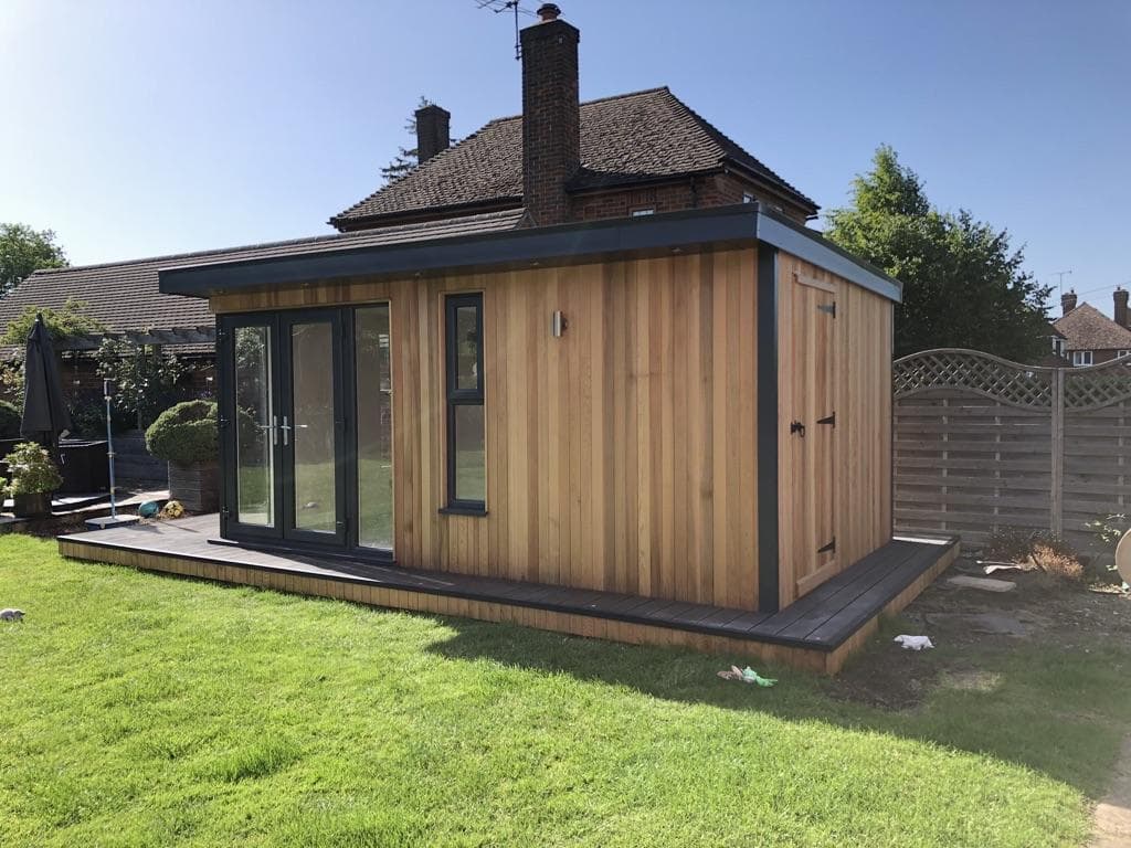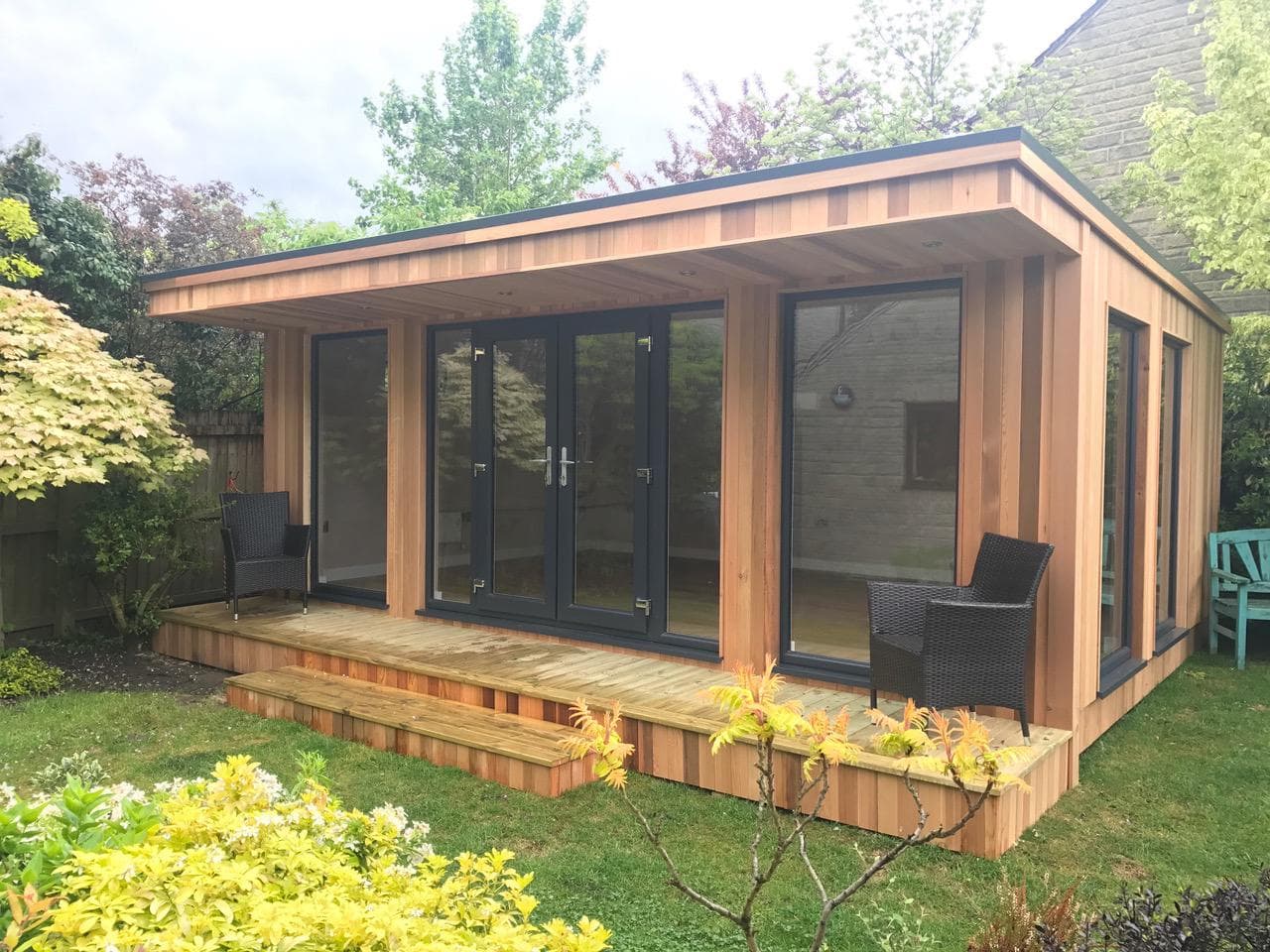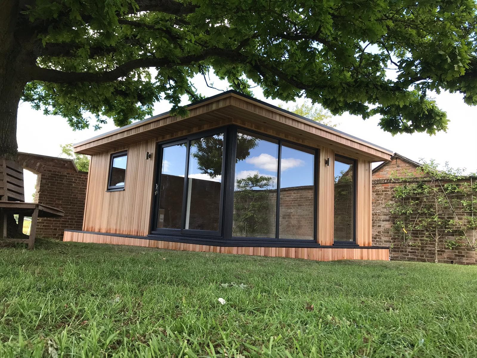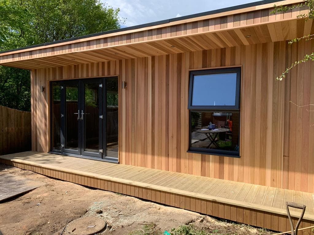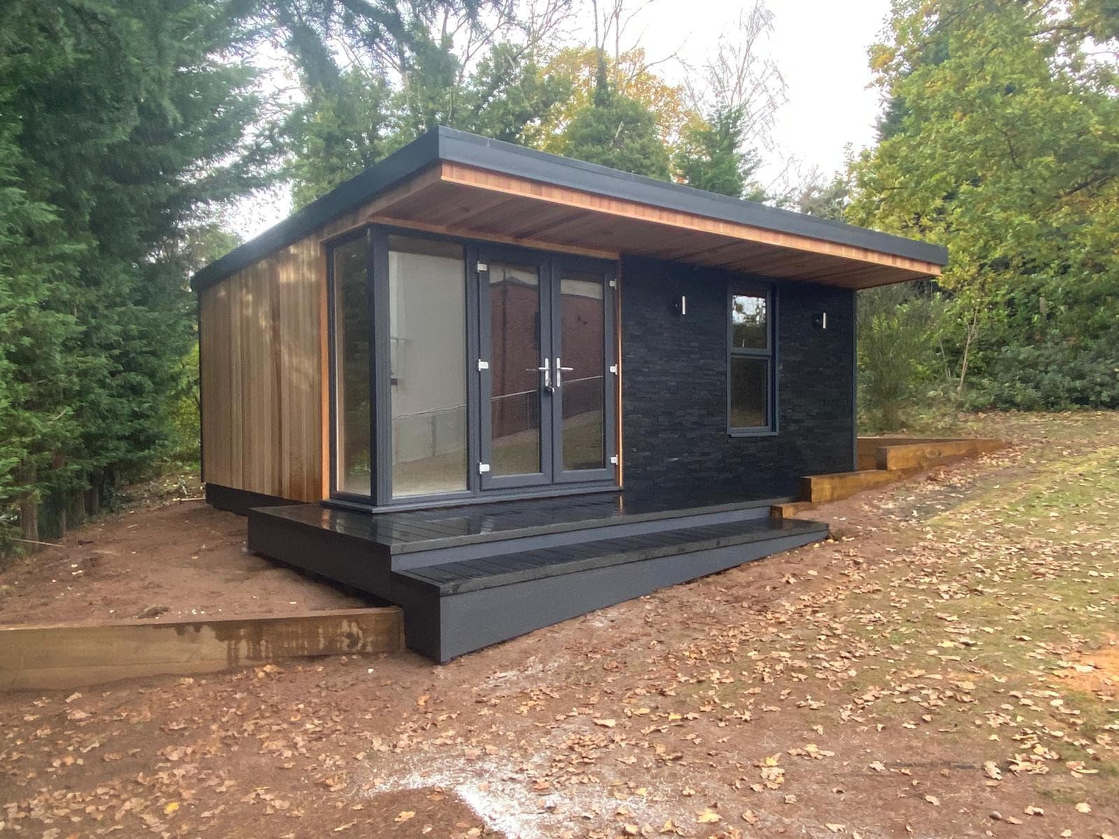 Our garden rooms are available in four different exterior finishes including traditional Western Red Cedar, thermowood, textured and rendered cement or split face stone slate.