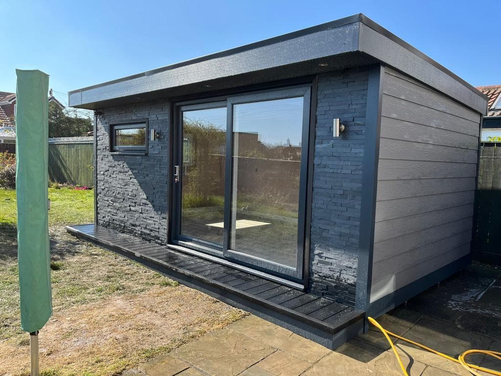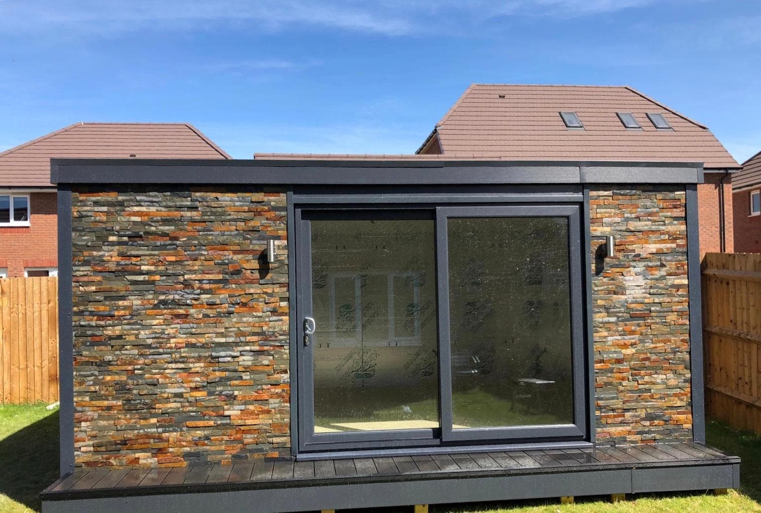 Our natural stacked split face stone slate provides a new look to our garden lodge line-up, providing a more modern look than our traditional designs which is ideal for sleek garden themes. Finished with our anthracite facia, wall and base profiles, our stone finished garden lodges are built with the same quality components as our other structures for all year round use.