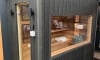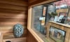 The external sauna door is made of clear safety glass, complete with a cedar frame, roller lock, hinges, seal, and handle, measuring 622mm × 1835mm. Each garden sauna includes a fixed double-glazed panoramic glass window panel. Bespoke panoramic or vertical glass window panels are available upon request.
