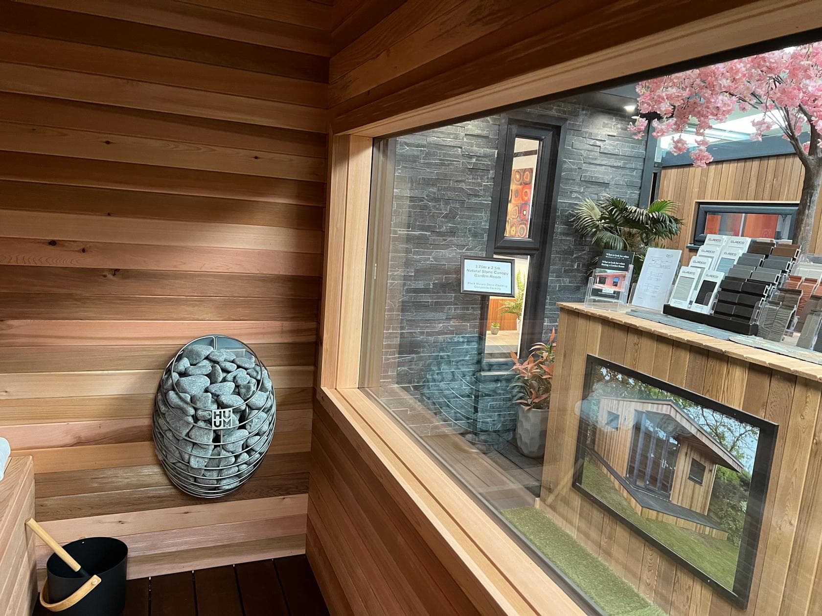 Each garden sauna includes the relevant Kw HUUM sauna heater, sauna stones, temperature sensor and controller. The sauna also comes complete with: