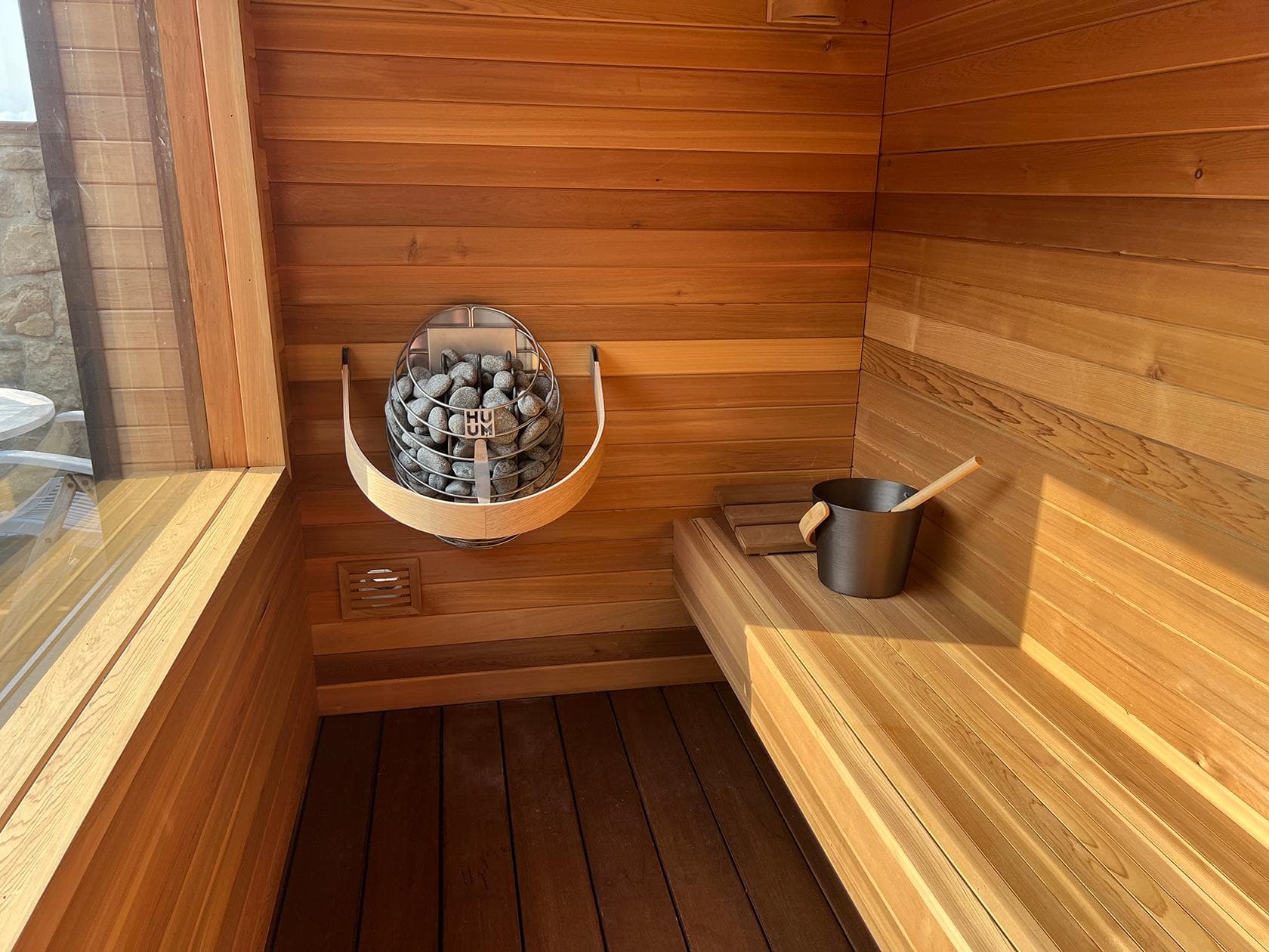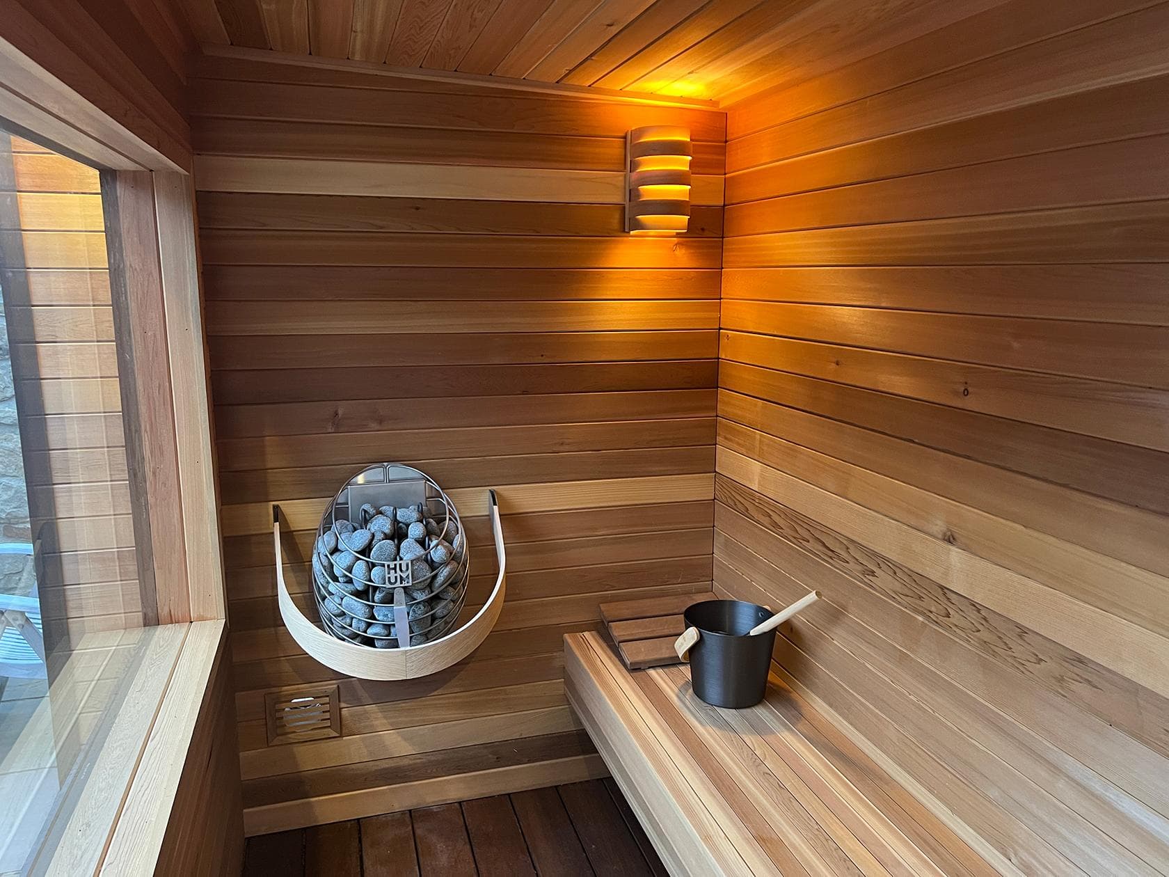 Each Oeco garden sauna is powered by a HUUM sauna heater. HUUM is an award winning company renowned for its innovative and elegantly designed sauna heaters, which blend modern aesthetics with traditional sauna experiences. Their stainless steel heaters are distinguished by a high stone capacity, ensuring gentle and long-lasting steam.